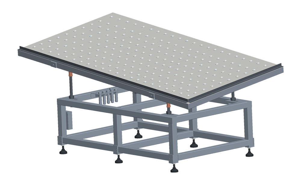 The table of the Gravitational centering station is inclined to a corner, and the sheet is just positioned at this corner. The bull's eye bearing on the table can be quickly removed and replaced with a stopper column. In this way, the special-shaped sheet can be positioned or two sheets can be positioned at a time, positioning The accuracy is about 1 mm, the structure of the gravity centering table is simple, and the price is cheap.