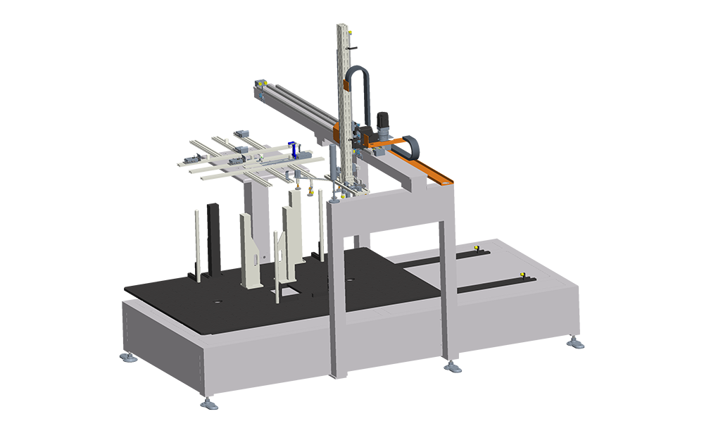 Integrate 2 depalletizing stations and 1 depalletizing manipulator on one rack, which saves space and is suitable for small and medium-sized thin sheets. Location.