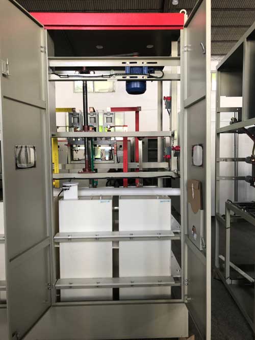 水電阻啟動(dòng)柜又稱為水阻柜,液阻柜,液體電阻啟動(dòng)柜,液態(tài)軟啟動(dòng)柜,水電阻啟動(dòng)柜的基本原理是通過(guò)機(jī)械傳動(dòng)裝置使導(dǎo)電液體中兩平行極板的距離逐漸減小直至為零,使串入電機(jī)轉(zhuǎn)子回路中的電阻值平滑減小,從而實(shí)現(xiàn)繞線式大中型電動(dòng)機(jī)的重載平滑起動(dòng)。它克服了頻敏電阻起動(dòng)器沖擊電流大、難起動(dòng)和操作不便等問(wèn)題。適用于大型設(shè)備的電動(dòng)機(jī)重載起動(dòng),是頻敏電阻起動(dòng)器和金屬電阻起動(dòng)器的替代產(chǎn)品。采用水電阻取代頻敏電阻起動(dòng)器和金屬電阻起動(dòng)器,近些年來(lái)的技改項(xiàng)目中也普遍使。