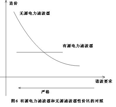 無源濾波器和有源濾波器的工程造價(jià)與諧波要求關(guān)系如圖6所示。