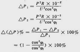 由上式可計(jì)算出功率因數(shù)由cosφ1提高到cosφ2時(shí)對(duì)降低可變損耗的效益。